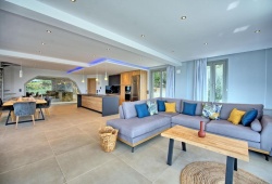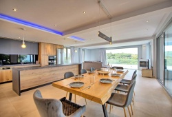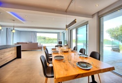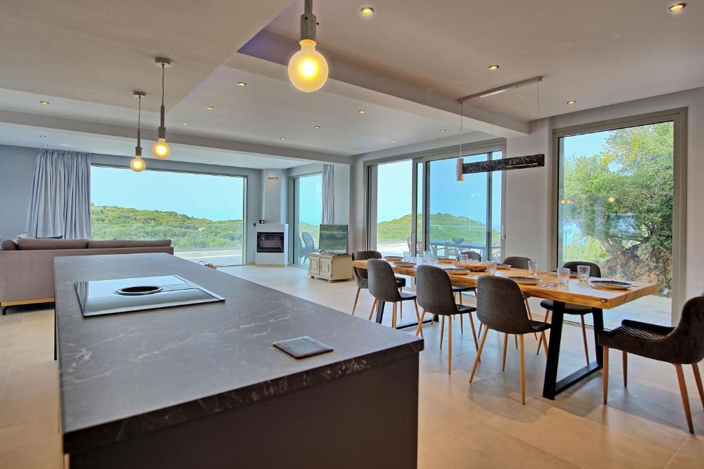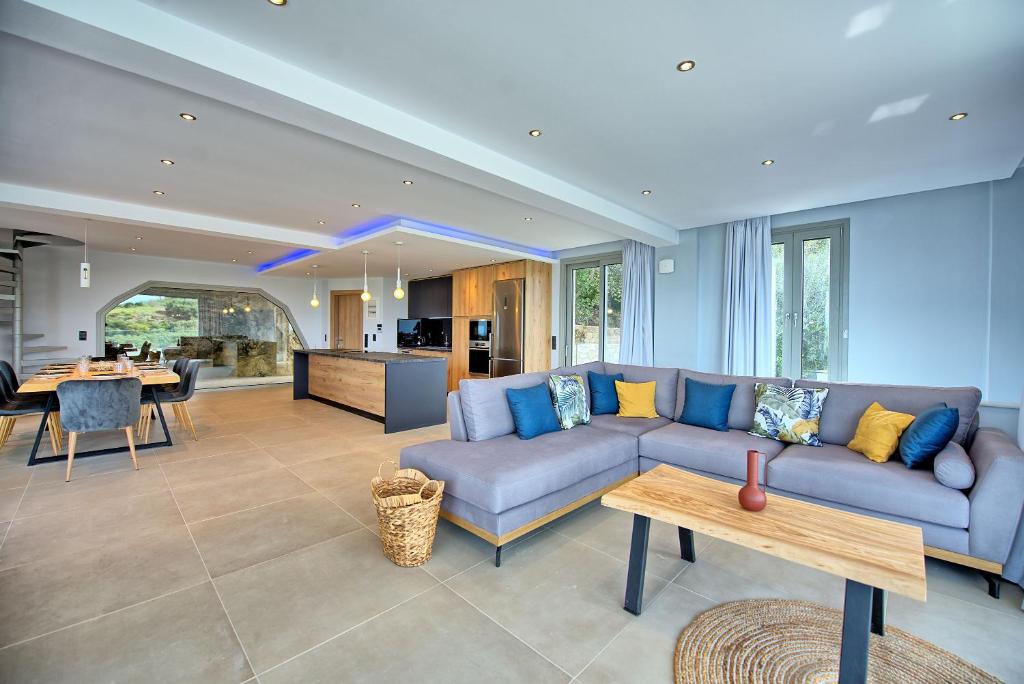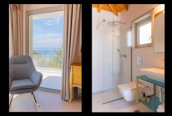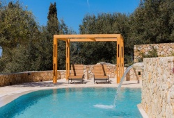 Prokimea is a three-bedroom villa in Makrades, close to the bustling western island tourist towns of Agios Giorgios and Palaiokastritsa. The villa in Corfu, which is brand new, exquisite, and flawlessly elevated, blends priceless furnishings with cutting-edge amenities. It can accommodate up to six persons. It has three bathrooms with showers, a well-equipped kitchen with a dishwasher, oven, and toaster, and a balcony with views of the sea. Additionally, there is a fireplace and a seating space. Additional villa features include a garden, a private pool, BBQ equipment, free WiFi, and free private parking. There are minimarkets and tavernas in the nearby town of Makrades where you may enjoy authentic Greek meals. The beginning of a lovely route along the old mule track to Agios Georgios (beaches) is about 800m distant. This about 6-kilometer track is accessible by foot or mountain bike. The beach is quite easy to go to, and you'll have plenty of options because there are stunning beaches in Agios Giorgios, Afioni (Porto Timoni), Paleokastritsa, and Liapades all within a 10-kilometer radius. For history buffs, there is also the Angelokastro Castle, which dates back to the thirteenth century A.D. Villa Prokimea is 27 km away from Corfu International Airport.