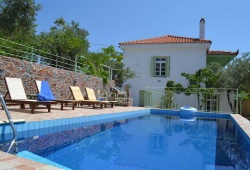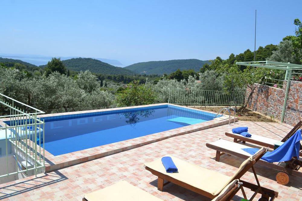 The outdoor area surrounding Liogerma villa is immaculately landscaped, with patios around the pool and the barbecue and excellent views of the pine mountains of Skopelos. The villa is situated 8 km from Skopelos, and its access directly to asphalt roads makes it even more attractive. Villa Liogerma is an ideal accommodation for rest and spiritual rejuvenation in Skopelos.
