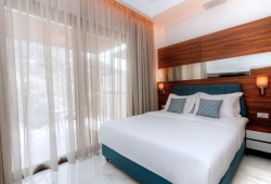 Every villa in the complex has a little private pool. A safety deposit box, a kitchen, a dining area, air conditioning, a seating area, a flat-screen TV with satellite channels, a private bathroom with a shower, bathrobes, and slippers are among the other features. Along with a coffee maker and kettle, there's also a burner, refrigerator, and oven.