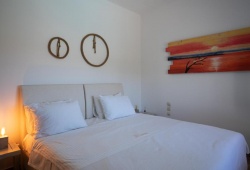 Located in the center of Paros, Greece, Villa Haritomeni offers plenty, unhindered views of the sea. This Paros villa in the Parikia region is situated on the same property but have separate private spaces and entrances. There are no parking lots, communal areas, etc. Haitomeni villa has its own mini-pool and jacuzzi, barbecue, parking space, and private patio or veranda with views of the charming Parikia port and the whole bay that stretches out into the Aegean Sea. The homes' interiors combined classic Grecian architecture with a very contemporary hardwood furniture selection. There is a bar area and a fully furnished kitchen with all the appliances needed for cooking. The accommodation offers a variety of local products to your welcome Brunch pack at your check in.