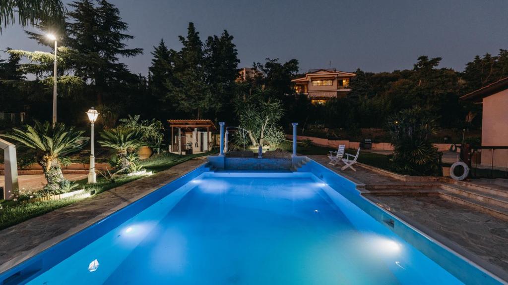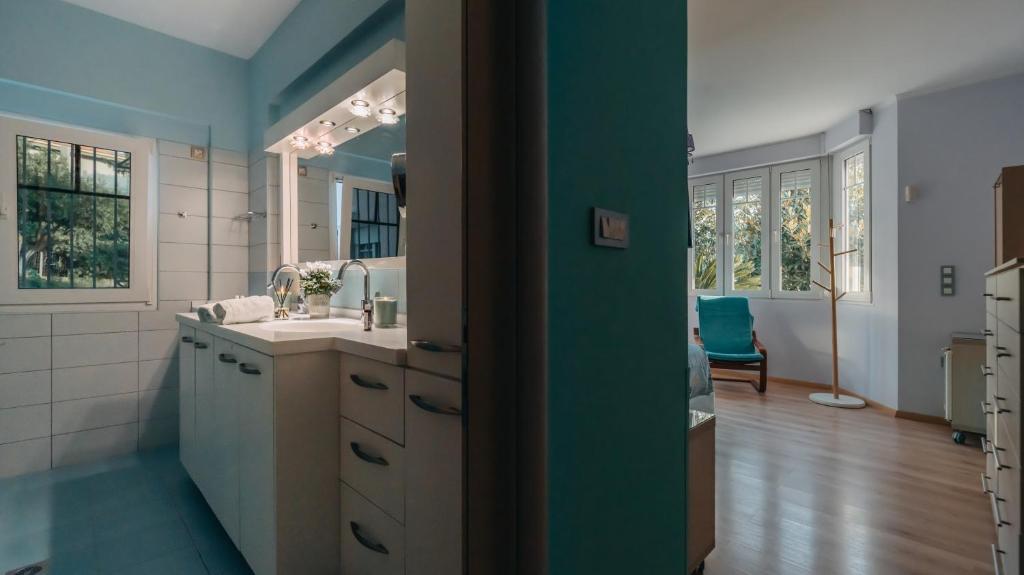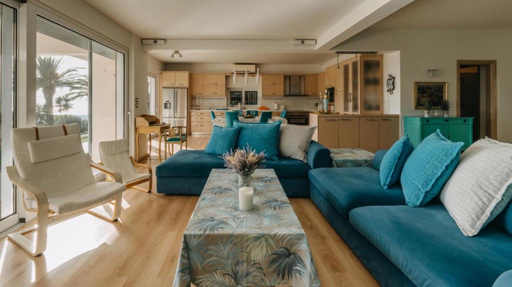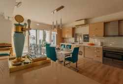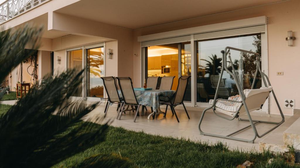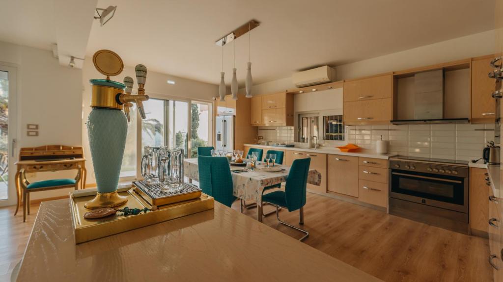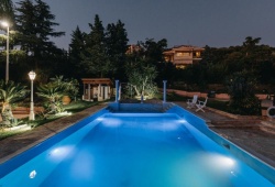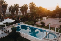 Create the perfect retreat at the Crystal Villa in Patras for individuals, families, or groups. The large villa has two bedrooms, a living area, a satellite flat-screen TV, a fully supplied kitchen, three bathrooms with a hot tub and a bath, and a balcony with views of the sea. Visitors can drink some wine or champagne and eat fruit at the villa after entering through a private entrance. Additionally, there is a fireplace and a seating space. You can enjoy the private pool and use the grilling facilities during the warmer months. Wifi is available in all areas, and parking space is available for your vehicle. Crystal Villa is 5.4 km. from the port of Patras and 41 km from Araxos Airport.