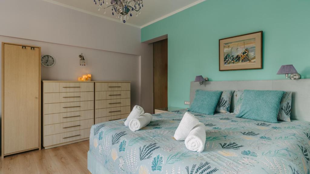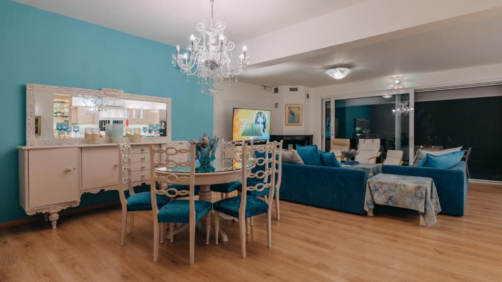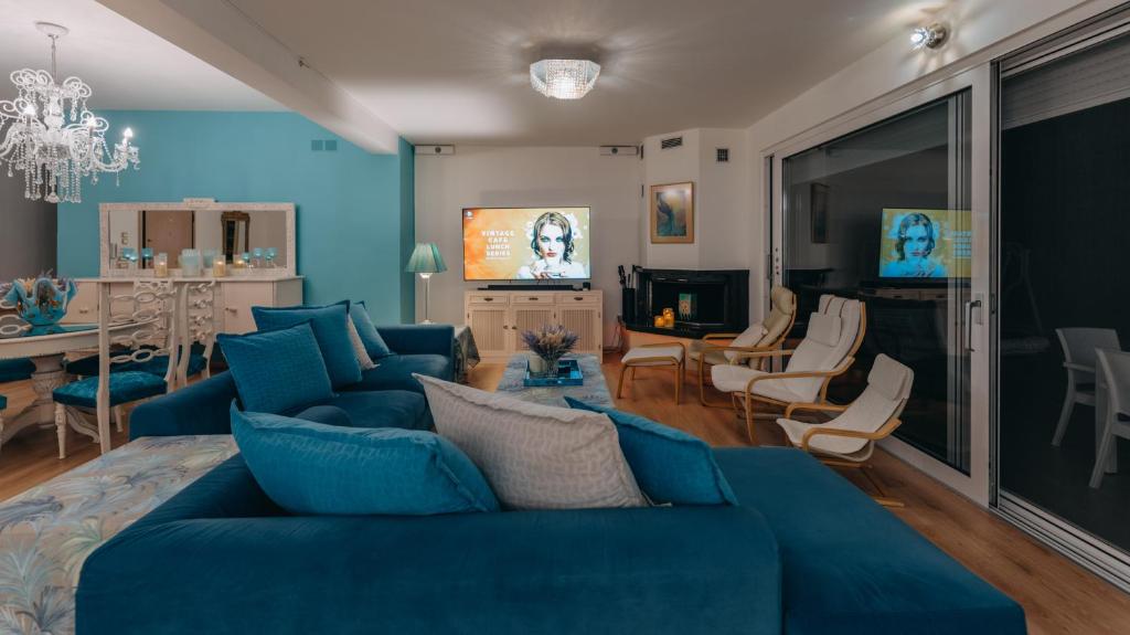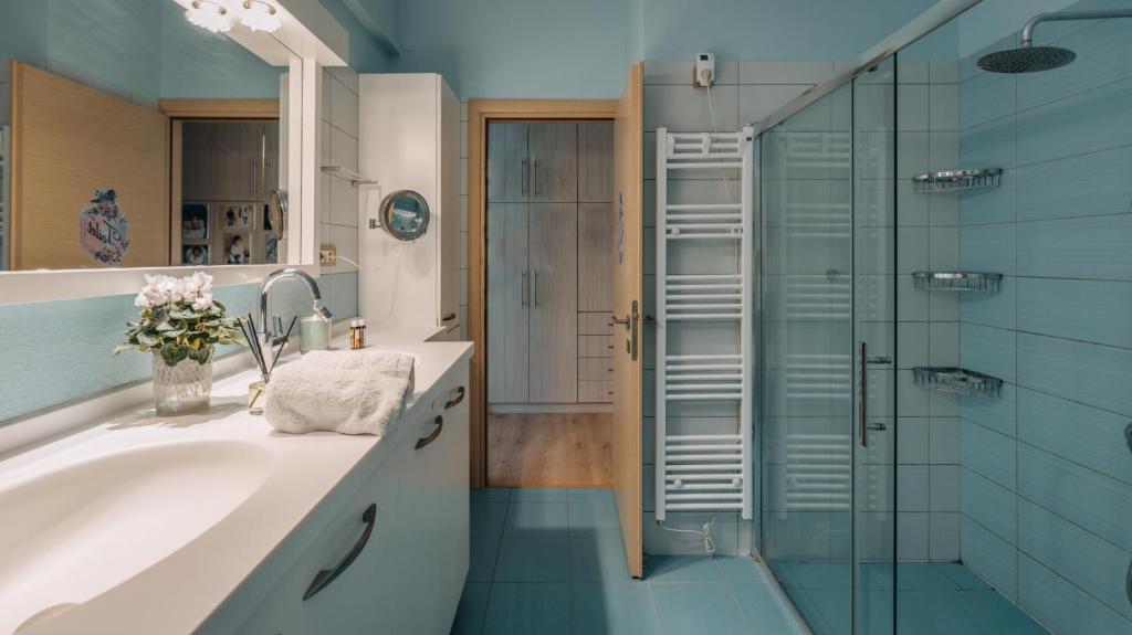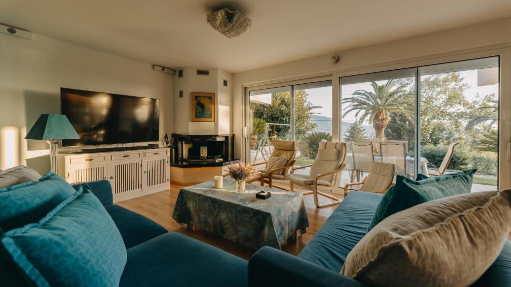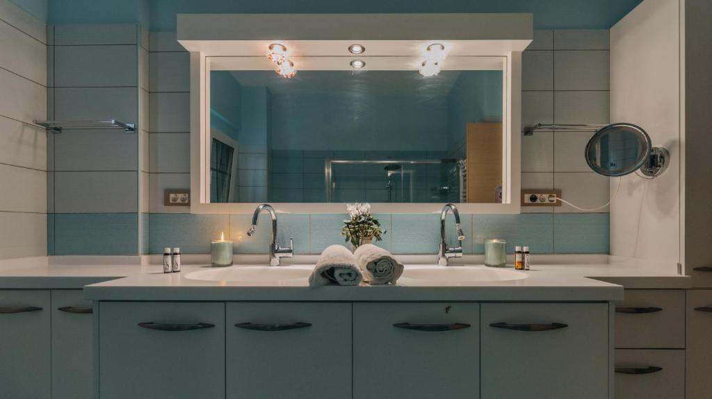 Create the perfect retreat at the Crystal Villa in Patras for individuals, families, or groups. The large villa has two bedrooms, a living area, a satellite flat-screen TV, a fully supplied kitchen, three bathrooms with a hot tub and a bath, and a balcony with views of the sea. Visitors can drink some wine or champagne and eat fruit at the villa after entering through a private entrance. Additionally, there is a fireplace and a seating space. You can enjoy the private pool and use the grilling facilities during the warmer months. Wifi is available in all areas, and parking space is available for your vehicle. Crystal Villa is 5.4 km. from the port of Patras and 41 km from Araxos Airport.