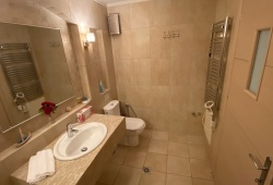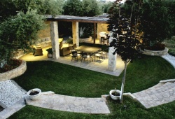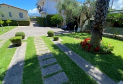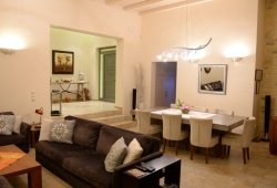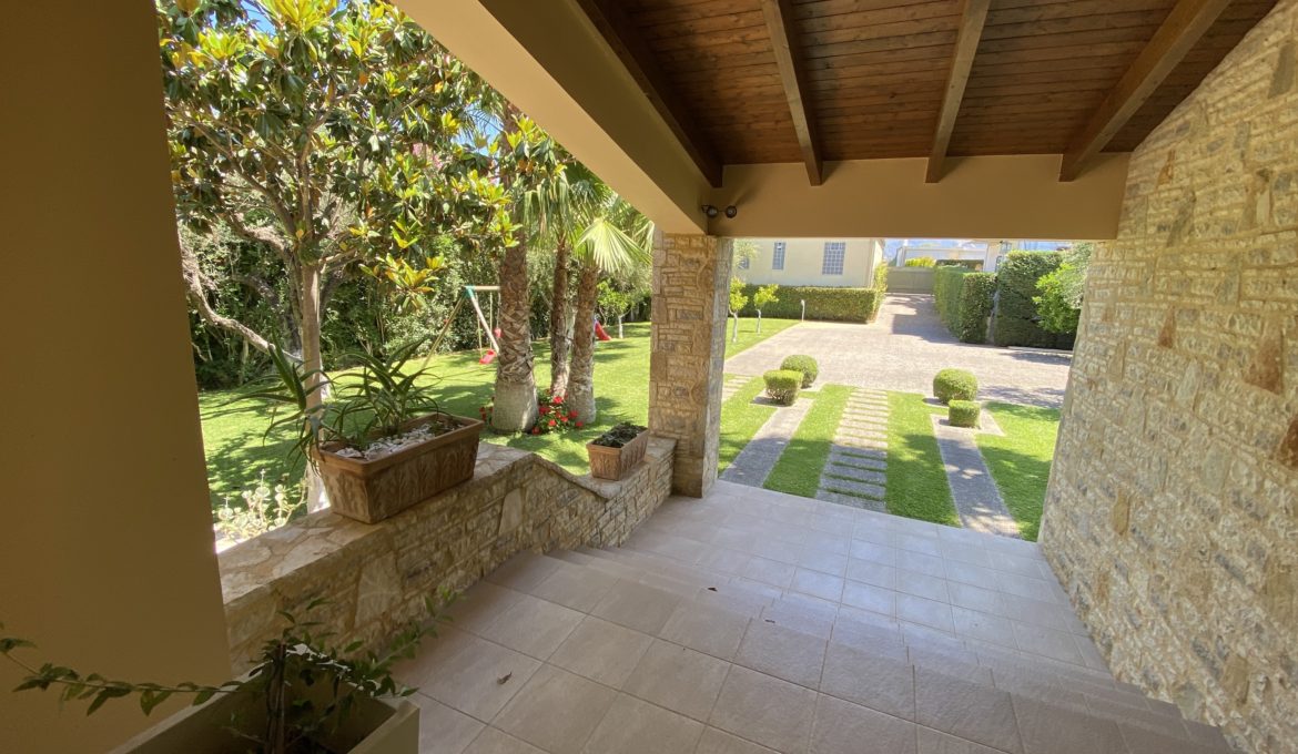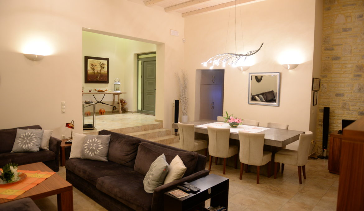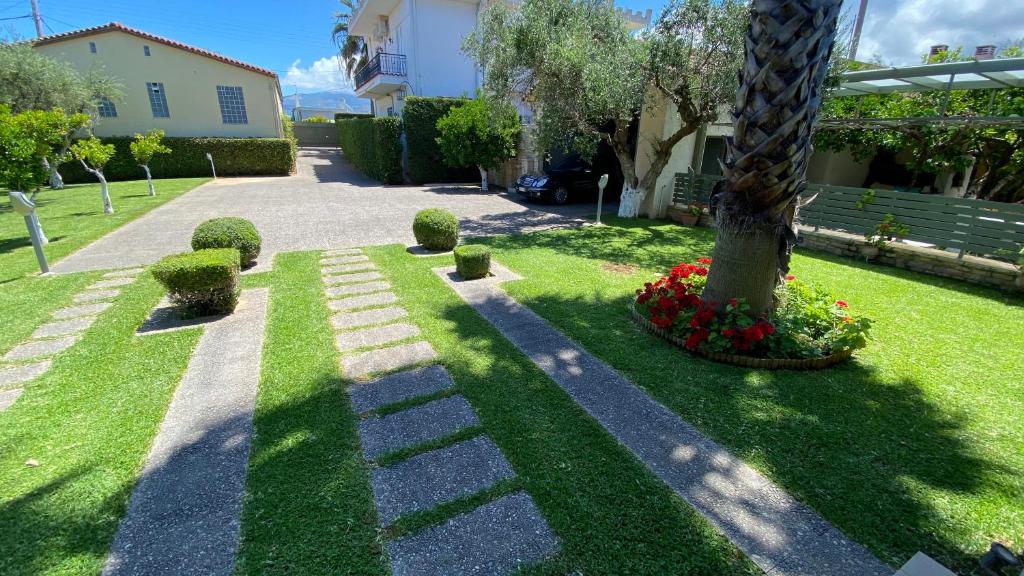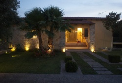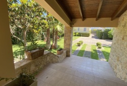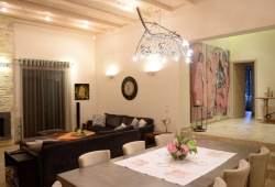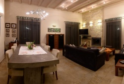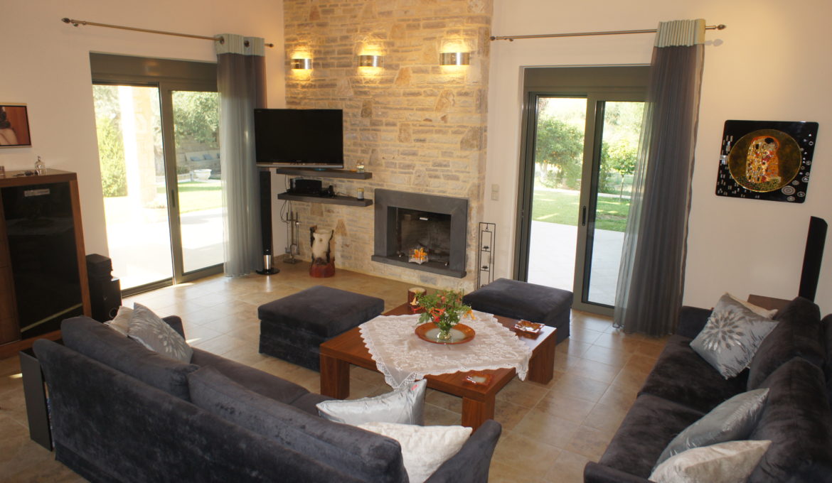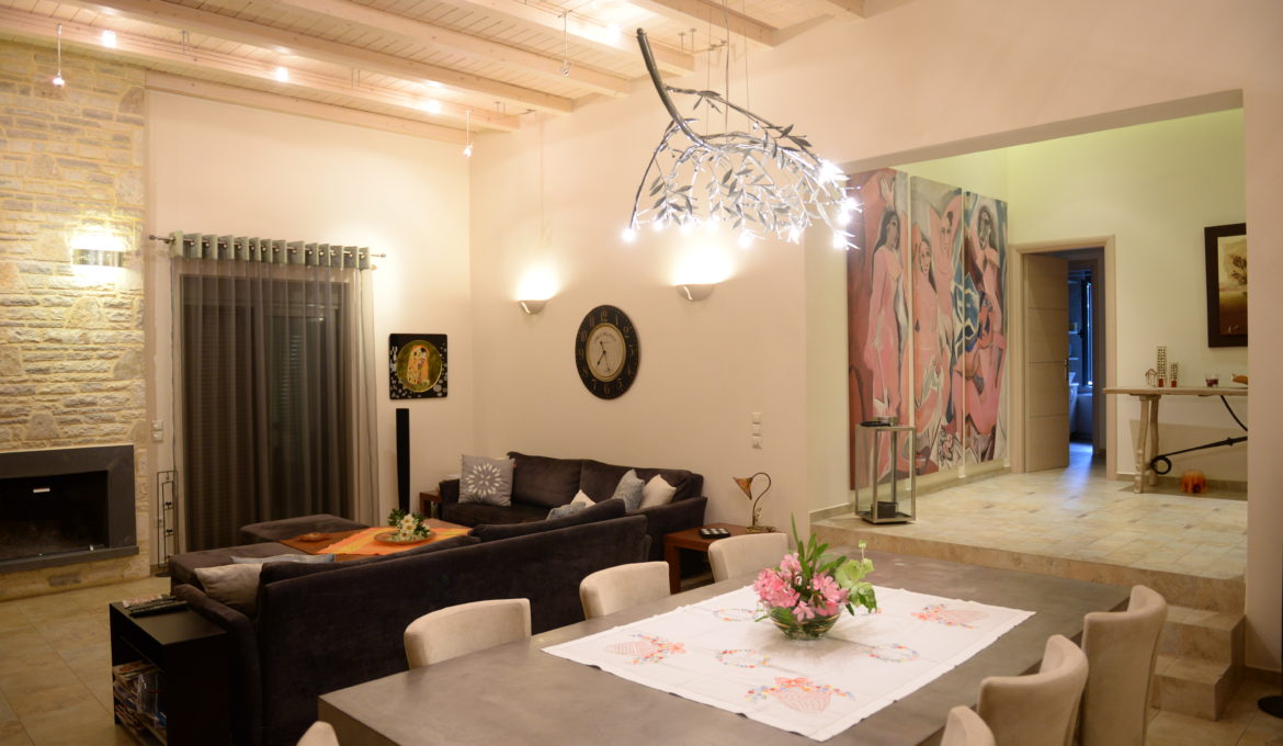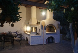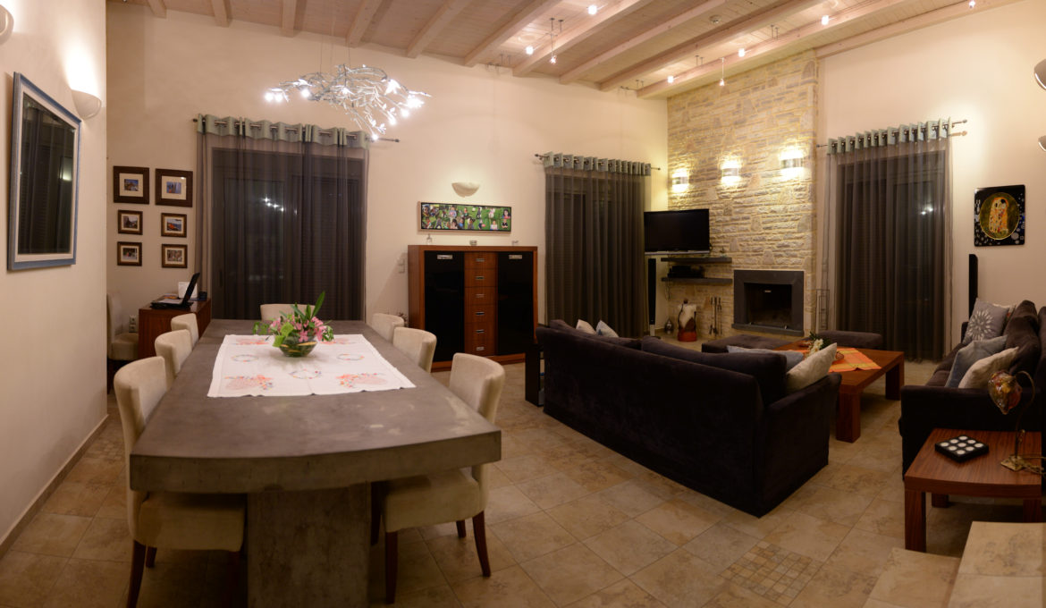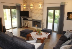 Built on a 3-acre plot of land with olive, orange, and lemon trees, Patras Villa Elia is a chic rental home with a total floor and basement space of 245 square meters, spacious verandas, and lawns everywhere! The villa features an open-plan living-dining space with a stone fireplace, three huge bedrooms, three bathrooms, and a large, fully equipped kitchen. There is free Wi-Fi available throughout the house, and the living room has a flat-screen TV and a complete sound system. The residence has air conditioning in the bedrooms, central heating throughout, and a smoke detector. Free toiletries, towels, and bed linens are provided to visitors. Guests can use the sauna and complete exercise equipment in the house's basement for free. Up to eight guest can be accommodated. Patras Villa Elia is located in the region of Paralia, only a short distance from the coastal road that allows visitors to drive in roughly ten minutes to the port and Patras city. Public transportation frequently connects the area to the city center, and the villa is 50 meters from the city bus stop. The Paralia region is connected to the city center and the nearby beaches of Kato Achaia by the suburban train. Patras Villa Elia is a unique location that is sure to make your trip to Patras unforgettable!