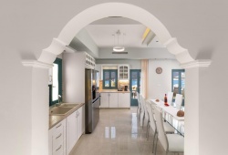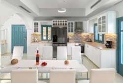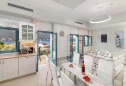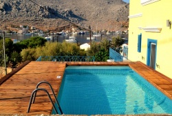Royal Villa Pedi is located next to the main harbor of Symi island. By car, the distance to the island's center is seven minutes. The public bus stop with regular routes is located one minute away, while the beach is two minutes distant on foot. Pedi is a seaside village located east in an incredibly gorgeous inlet. It's an area for fishing with a few of bars and several good places to eat. There are a few remains of an ancient Christian basilica church on the village's coast. Choose Royal Villa Pedi as your starting point for exploring the Greek island of Symi. The villa can accommodate up to 10 guests.