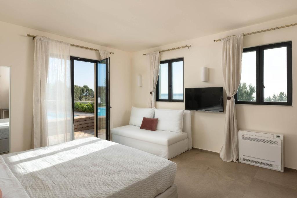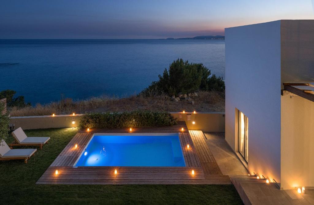 A classy and serene beachside is South Key Villa, perched atop Pefki's hill in Rhodes. With a beautiful panoramic view of the blue waters of the island, this villa features a luxurious private swimming pool. The sea is very accessible and only requires a short stroll. Additionally, it's worthwhile to explore the whole coastline here.