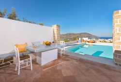Petra House is a private vacation rental in Karpathos with one bedroom and a private bathroom. This air-conditioned villa has a balcony overlooking the pool. In good weather, you can enjoy the garden and cook a delicious supper on the BBQ. In addition to a kitchen and eating area, there is a separate bathroom. There is a flat-screen TV with cable channels and a washing machine. Petra House Karpathos has additional amenities, such as a seasonal outdoor pool and sauna. Wifi is available in all areas, and there is free parking for your own or rental car. The property is 2 kilometers from Afoti Beach and Pigadia Port and 13 km from Karpathos Airport.