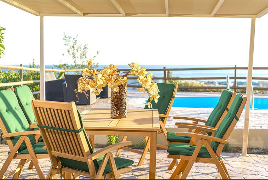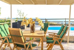 Enjoy the private swimming pool with a view of the sea and the village. You may prepare your food at the stone-built BBQ area on the property and eat on the furniture outdoors and relax at the sun loungers. There is a spacious dining table and a flat-screen TV with satellite reception. There is internet WIFI and air conditioning in all areas. Every contemporary amenity, including a dishwasher, microwave, coffee maker, refrigerator, oven, and a few basic utensils, is completely furnished in the kitchen. The property has a private parking space available for your private or rental car.