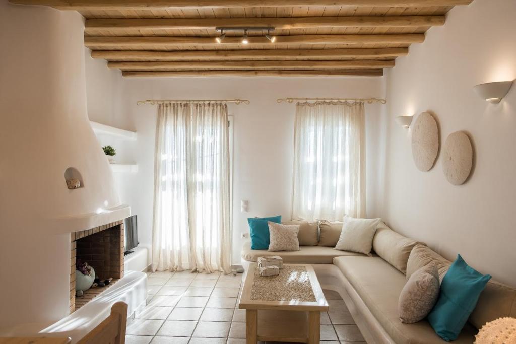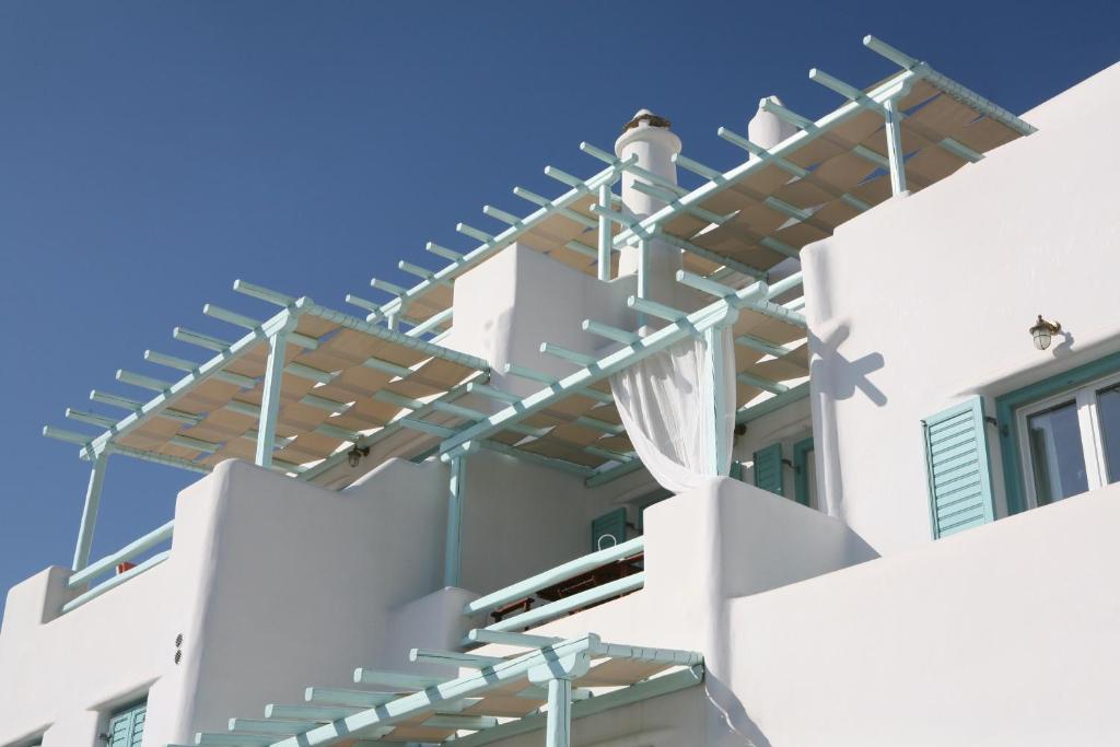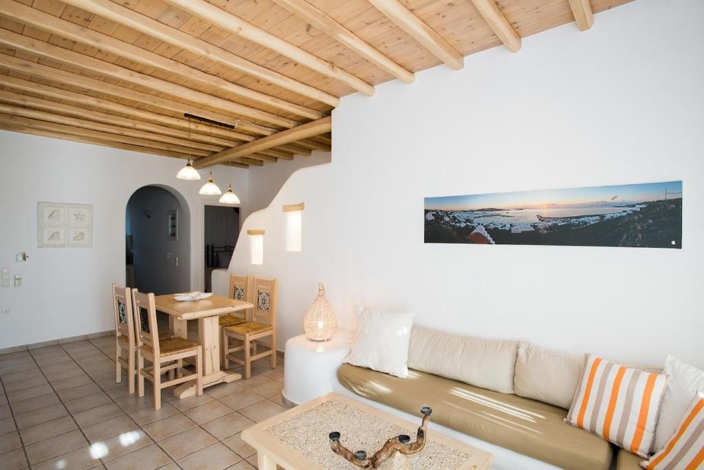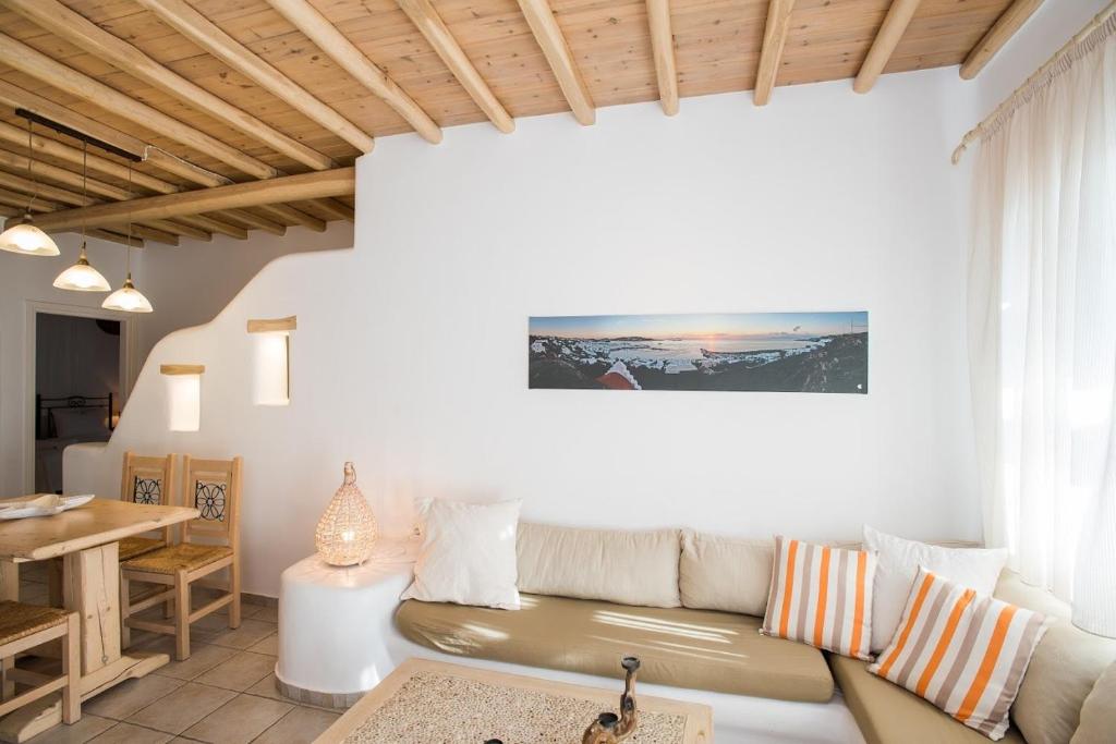 Situated on Mykonos' Platis Gyalos, Villa Meliti is a recently constructed hotel complex. It is made up of one studio for 2-4 people and six accommodations that can hold 2–5 people each. All apartments at Villa Meliti, which are luxuriously furnished with meticulous regard to Mykonian architecture, include one or two bedrooms, a contemporary kitchen that is completely equipped with a stylish dining area, a big, attractive, and comfortable living room, and pleasant bathrooms.