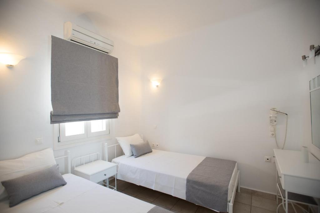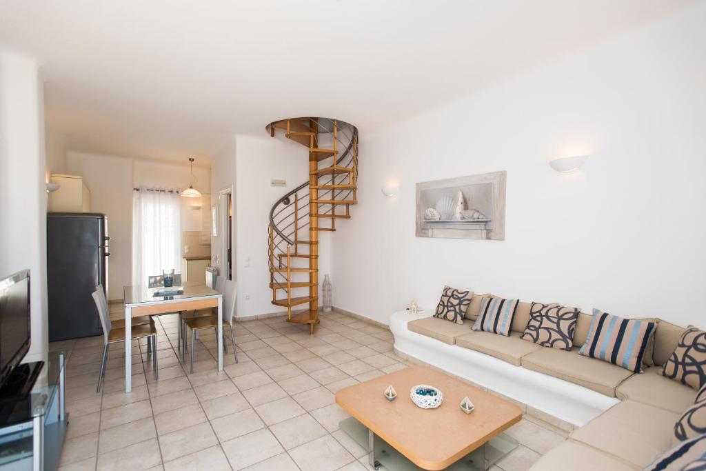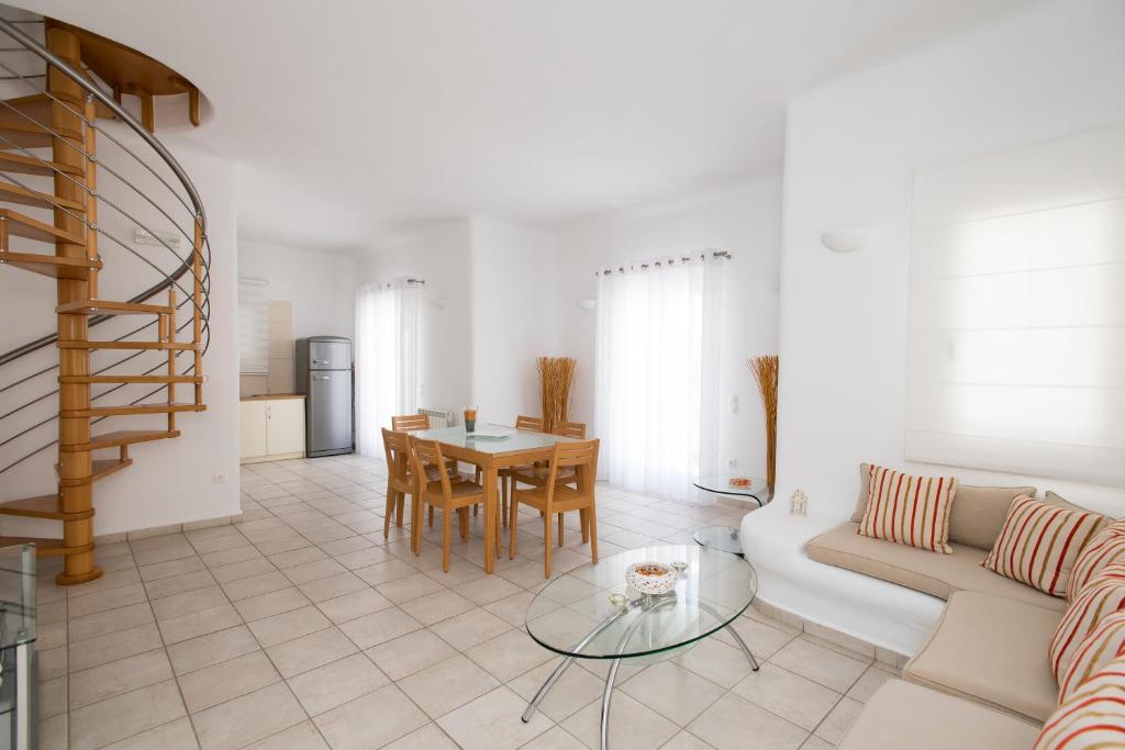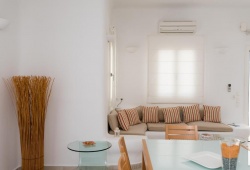 Villa Nireas is a brand-new complex with an eye-catching sea view that has two maisonettes that can accommodate four people, one maisonette that can accommodate two people, and two apartmetns that can accommodate two people each. Apartments in Nireas include contemporary furniture and Cycladic architecture. They have a DVD player, satellite TV, and free Wi-Fi. There is a refrigerator and an eating space in the kitchens. At one of the many bars on Platy Gialos Beach, hotel guests may unwind on the beach or enjoy local food.