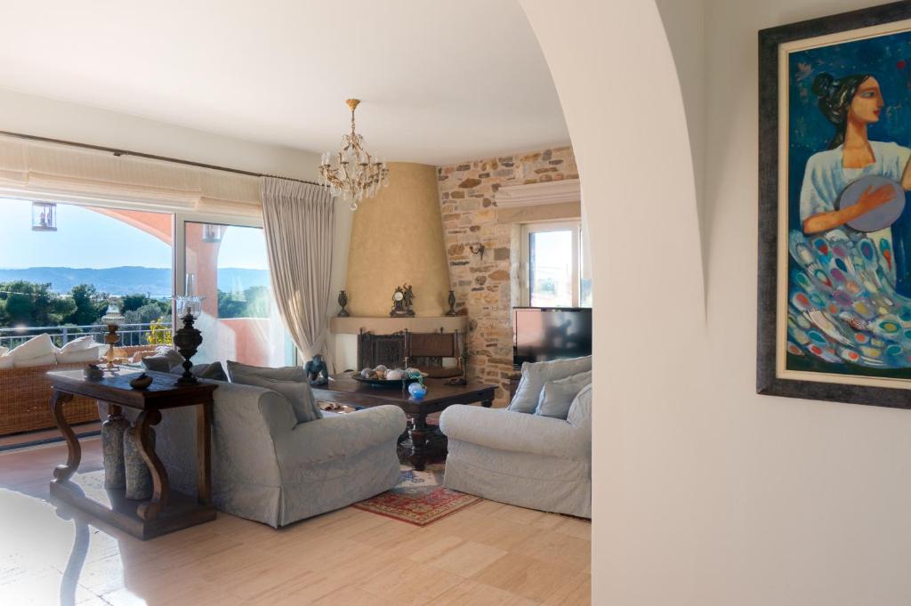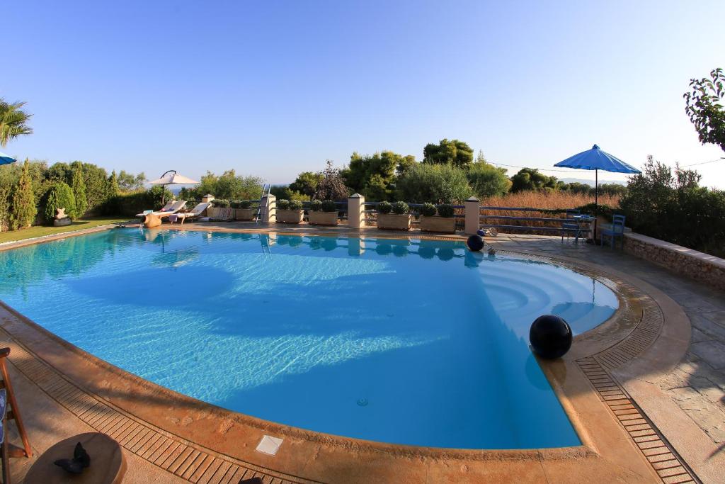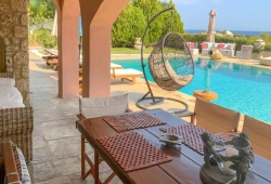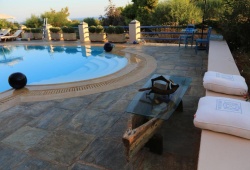 Just across Spetses Island, Villa GreJo is situated in Agios Aimilianos, the most distinguished and prominent neighborhood of Porto Heli, also referred to as "the Greek Riviera," which has a view of the Aegean Sea. With 6 bedrooms and 2 living rooms, all of the rooms have free air conditioning, wooden floors, and are fully furnished with all the latest amenities, including vehicle parking, maid service, on-site administration, and luxurious linens. The home has a wonderful 77-square-meter swimming pool with a sun deck and pool equipment, and it is surrounded by a lush garden with palm trees and Mediterranean landscaping plants. The villa can accommodate up to 15 persons! Villa GreJo in Porto Heli is only a 3-minute walk from the beach, water sports, and local amenities.