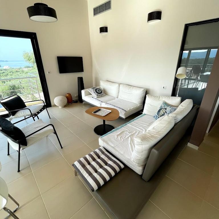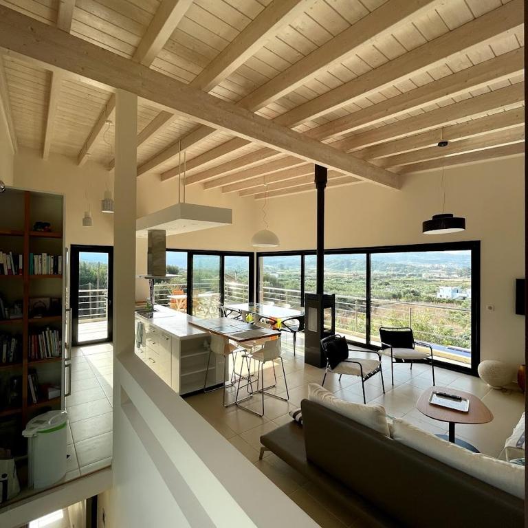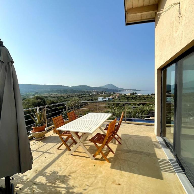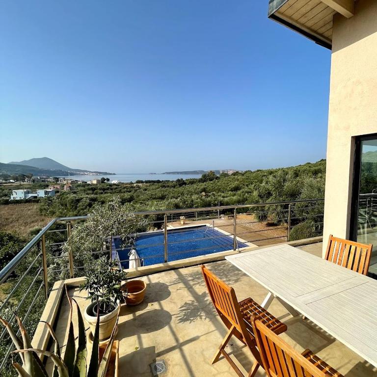 Villa Poems is the greatest option if you're looking for private accommodation in Pylos with a tranquil pool. This villa has garden views and free parking for your vehicle. There are four bedrooms, a living room, a fully functional kitchen, three bathrooms, a washing machine, a flat-screen TV, and WiFi throughout the Poems Villa. It can accommodate up to nine guests. Things to see and do during your stay in Pylos are visiting the ancient monument of Niokastro overlooking the stunning Navarino Bay, exploring the Nestora cave, discovering beautiful beaches like Viodokilia Beach, and learning of historical artifacts at the Archaeological Museum of Pylos.