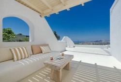 The villa is situated in Pyrgos, a village in the region of Kallisti. In the old times, it was called Kainourgiobourgo, and it is at the highest point of Santorini. It is located 10 km southeast of Fyra and belongs to the regional department of Kallisti, in the Municipality of Thira. The Alter Ego villa is a beautiful yet luxurious villa in a magnificent area with a superb view of the Aegean Sea. The villa has been built using traditional construction methods, with the main materials being whitewashed stone and wood, which are in perfect harmony with the blue sea and the white sky. It is also equipped with the most modern facilities and appliances. Alter Ego Villa features a flat-screen TV with satellite channels and a seasonal outdoor pool. The kitchen is equipped with refrigerator and wifi in available in all areas.