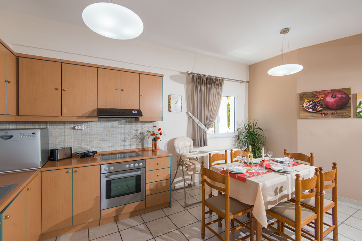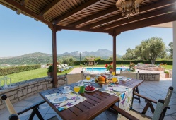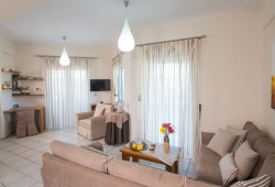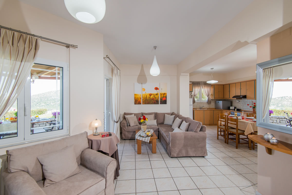 There is a private 35-square-meter pool with a children's part that also operates as a jaccuzi, surrounded by a marvellous garden area of 2.000 square metres, appropriate for people who love peace and nature, with many different kinds of flowers and trees. The interior of the villa in the main building is a split-level house of 120 square metres, and it has the possibility of accommodating up to five individuals using a sofa bed upstairs.