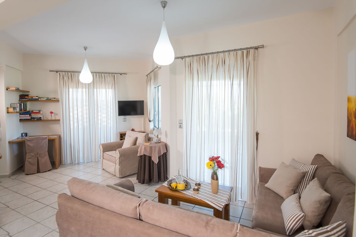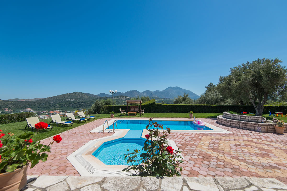Villa Elisabeth, located in Perama Rethymno on the top of a green hill, is a peaceful and relaxing villa with a mountain and sea view. It is a 120 sq m split-level apartment and provides a private swimming pool of 35 sq m and a 600 sq m lawn garden around it.