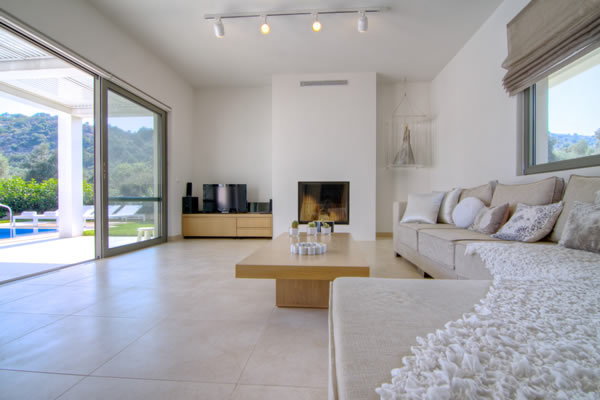 The cooling of the villa (with out air-conditioning), heating and hot water. And finally, excellent conditions of natural of artificial lighting.The villa is 186 m²., built with an indoor lift. Upstairs there are three bedrooms with double and single beds, bathrooms and spacious verandas with a view of endless greenery that extends to the peaks of Lefka Ori.(White Mountains). On the ground floor there is a spacious sitting room with satellite TV, a fireplace and a comfortable sofa.Well-organized kitchen, combined with a cosy dining room. All bedrooms are equipped with Coco-mat mattresses and linen. Wifi in all areas.