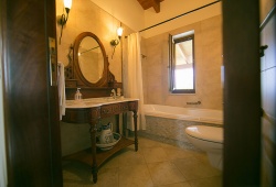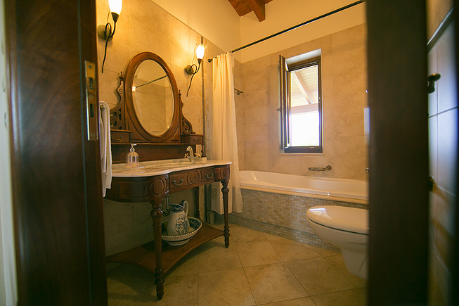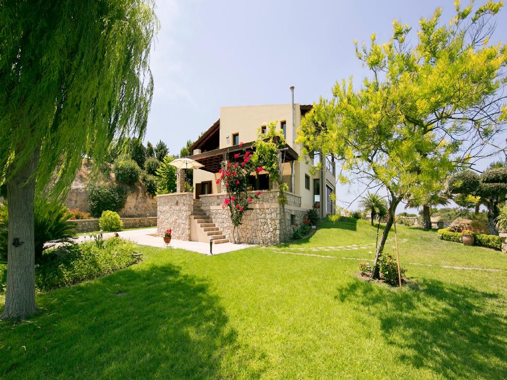 The 220 m2 villa can easily accommodate 8–10 people, offering three double bedrooms on the upper floor and one double bedroom on the main floor. This house has a large sitting room and a fully functional kitchen, with modern and vintage décor pieces. There's a flat-screen TV with DVD player and satellite channels. Every bathroom has a hairdryer and a bathtub. With views of the garden and sea, rooms open to balconies. The kitchen and outside space are connected by a sun terrace including a big dining table and a stunning view of the garden, pool, and sea. If you are looking for a private accommodation, Russelia Villa in Rhodes is the ideal option.