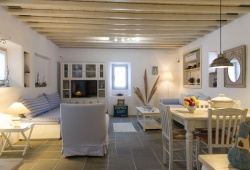 River Villa is a private accommodation situated on the island of Sifnos, 100m away from Kamares beach. The villa is surrounded by a 1,500 sq. m. garden with flowers, herbs, citrus trees, a vineyard, and olive trees. The simplicity, comfort, and refined luxury accommodation in Sifnos, in combination with the uninterrupted view and the proximity to the sandy Kamares Beach, guarantee you a pleasant and invigorating stay. River Villa has two bedrooms and two sofa beds in the living room. Also includes a kitchen with a dishwasher, oven, kettle, as well as a flat-screen TV. You may relax on the gardens and admire the Sifnian landscape. The villa can accommodate up to six guests. If you wish to have relaxing and private holidays in Sifnos, River Villa is your ideal place.