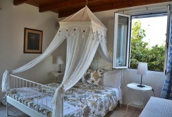 The 250 square meter interior of the property is divided into two floors with two independent entrances that are joined by the pool. A spacious and comfortable sitting space is located on the ground level and is connected to the kitchen. There is a library with a desk, TV, and Hi-Fi sound system in the sitting room. Every device that is required, including a stove, refrigerator, and microwave, is present in the kitchen. The two main bedrooms on the ground floor each have a double bed and a separate bathroom. Every bedroom has a TV, air conditioning, and a small dressing area; both lead out to the main balcony with the 360-degree view. To reach the single bedrooms, ascend the wooden staircase. There is Wi-Fi throughout the entire property. The villa can accomodate 2-10 guests.