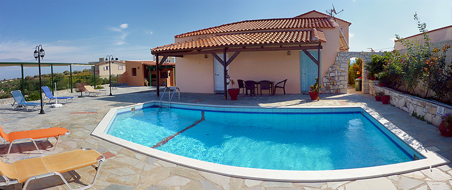 Villa Galini is built at the foot of a hill just outside Heraklion; it is situated at a privileged location on a central road outside Heraklion towards the village of Episkopi. Villa Galini offers a magnificent view to the lush hills with trees and vines and the Cretan Sea. The villa occupies a land of 1,100 sqm and offers spacious and comfortable areas both indoors and outdoors for your vacation in Crete.
