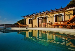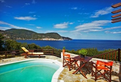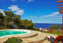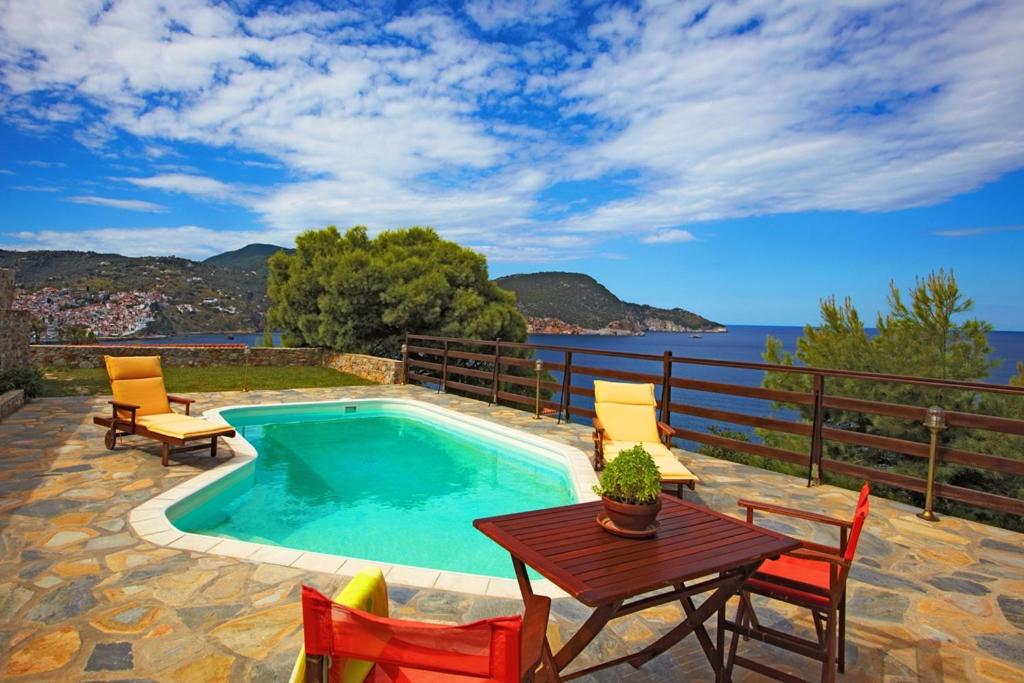The Porto Skopelos Villas provide comfortable vacation rentals on the stunning, verdant island of Skopelos. The three separate villas that make up this complex are located on various levels. Every one of them has their own pool and a surrounding area. The villa has a fully furnished kitchen with an oven and microwave, a private bathroom with a shower and a hair dryer, a patio with views of the sea, a seating area, and satellite TV. In addition, a coffee maker, kettle, hob, refrigerator, and toaster are provided. There is an outside dining area where guests can eat. Five people can stay at the villa. Porto Skopelos Villas is 1.6 km from the port.