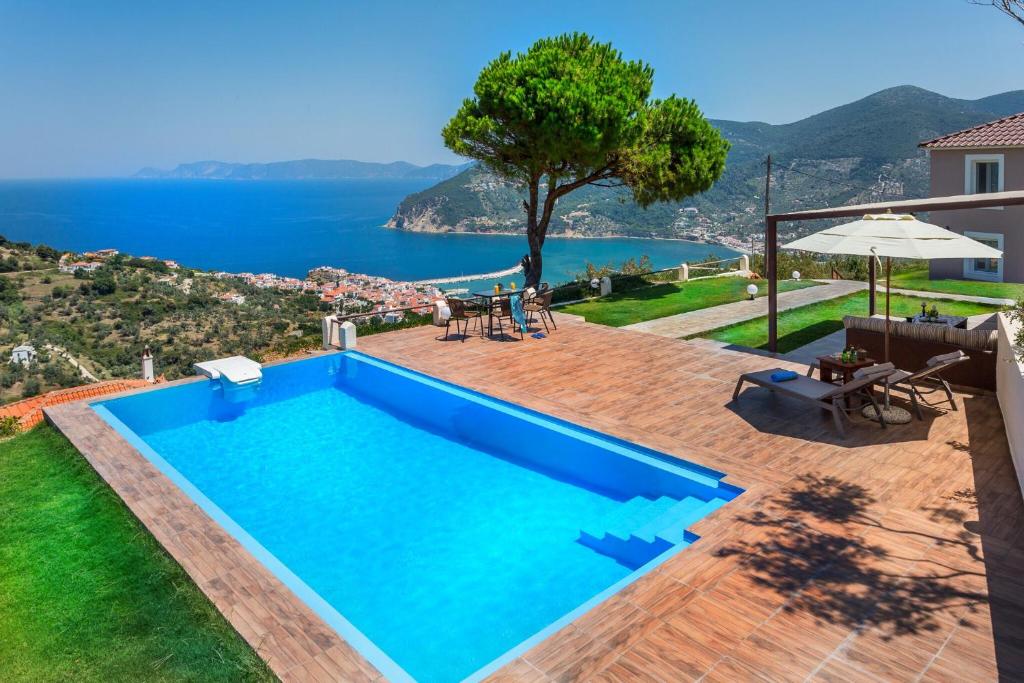 Villa Savvina is located in Skopelos. 1 km from the city center, and it is surrounded by nature. One bedroom, a living room, a flat-screen TV, a kitchen with an oven and dishwasher, and a bathroom with a walk-in shower are all highlights of the villa with a terrace and views of the sea. The house comes with bed linens and towels. The accommodation features soundproofing and a separate entrance for increased privacy. Parking is available, there is a swimming pool for leisure, and WiFi is available throughout. The villa can accommodate up to 2 persons. If you are seeking a quiet and private vacation rental, Villa Savvina in Skopelos is the ideal option.