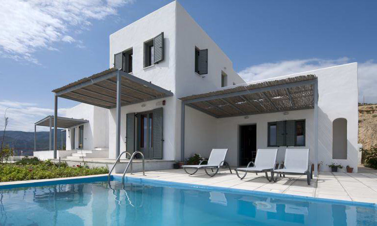 Lino are three great independent villas located near Skyros Town each has a private pool with sea water. Convenience and comfort makes these houses the perfect choice for your stay in Skyros. The Villa for 2 person is a contemporary open-plan villa with a large living area furnished with a double sofa bed, a fully functional kitchen, and a king-size bed in the bedroom. The Villa for 4 persons is a two storey building. There is a large living room with a dining space and a fully functional kitchen on the main level. Additionally, there is a bedroom with a shower in its own bathroom. The main bedroom, complete with a private bathroom and shower as well as a charming balcony, is located on the first level.