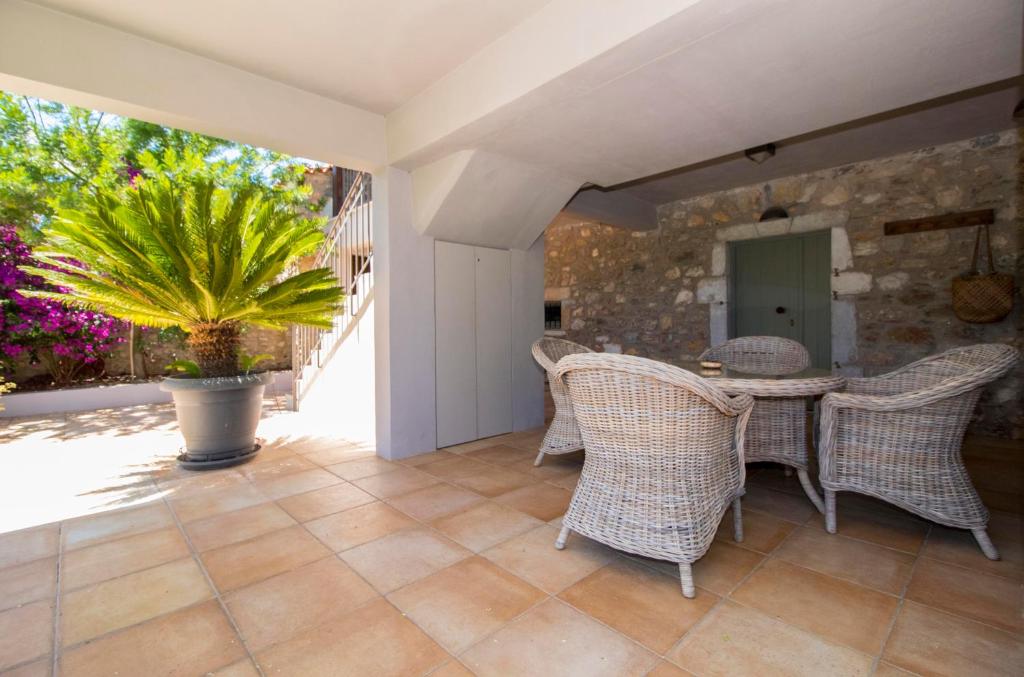 Villa Magoula is a stunning location that provides the best accommodations and leisure. Perfect for get-togethers with family or friends in the Spartan surroundings. Short distances can be covered by anyone combining trips to the sea and the mountain. The home features spacious balconies overlooking Taygetus and the fortress of Mystras, as well as a sizable and well-kept garden. Additionally, there is parking for two vehicles. The villa has three bedrooms, three bathrooms, a dining area, a fully functional kitchen, bed linens, towels, a flat-screen TV, air conditioning, and a fireplace. The villa can accommodate up to 6 persons. The vacation house is 8.2 kilometers from the Laconian Collection. Villa Magoula is located about 75 kilometers from Kalamata International Airport, the closest airport.