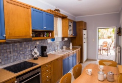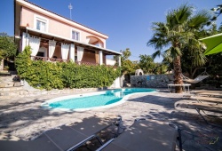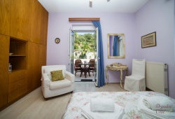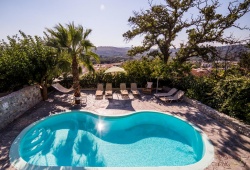 It has 4 bedrooms, 1 bathroom, 1 WC, 1 kitchen and 3 living-rooms in a single room with the dining area (with neoclassical furnishing and an authentic Cretan living room). In the courtyard there lounges to relax all day long and dining tables for food, in every beautiful corner of the house, in the barbecue, in the courtyard of the kitchen and in the terrace above the pool area. It also has parking for 3 cars, free internet access and satellite TV.The villa can accommodate up to 8 guests.