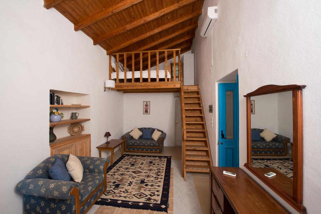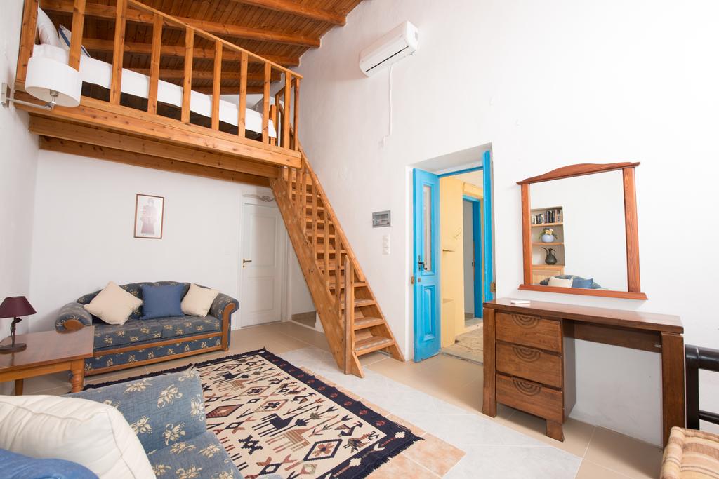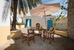 Petros Villa is situated at the entrance to George Street on Symi Island in a peaceful area of the village. An outside staircase leads up onto a spacious private terrace with an outside dining table and sunbeds. The views are superb, looking down the Pedi valley, out to sea, and Turkey beyond. The downstairs features an open concept kitchen complete with a mini oven and stove, as well as a dining table and divan lounging space. Up stairs is the air-conditioned, spacious bedroom with a double bed. The en suite shower room is tiled throughout. The villa is located less than 5 minutes walk from the village centre with its shops, tavernas, and bars. Villa Petros is ideal for those seeking relaxation and spacious accommodation with a fantastic terrace that you will never leave. The villa can accommodate up to four guests.