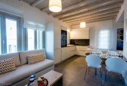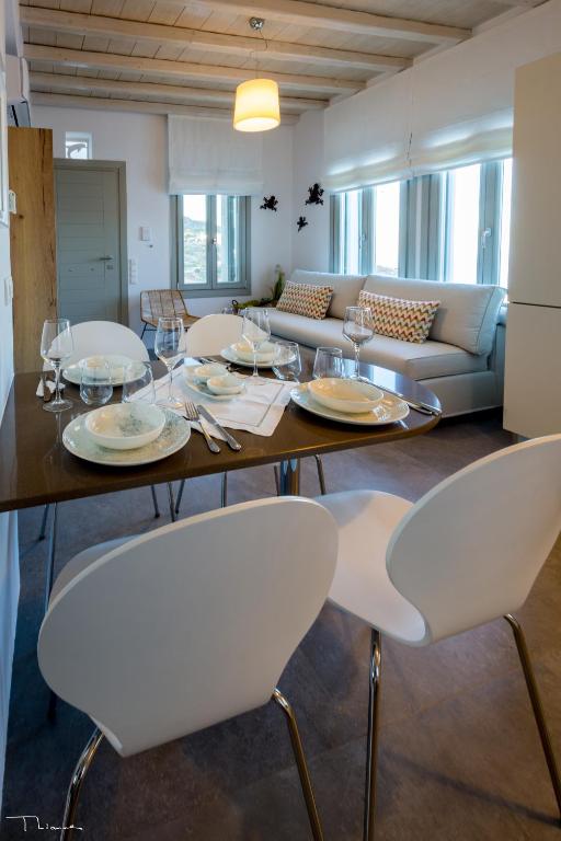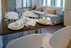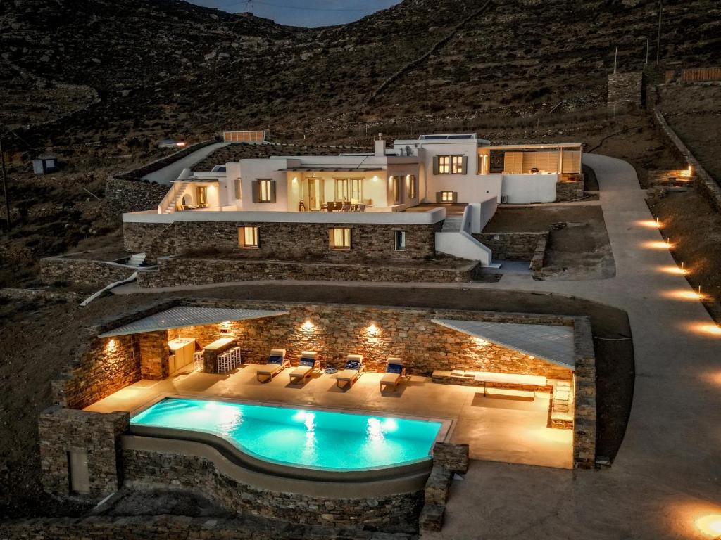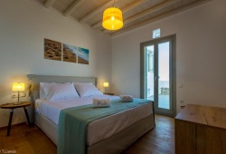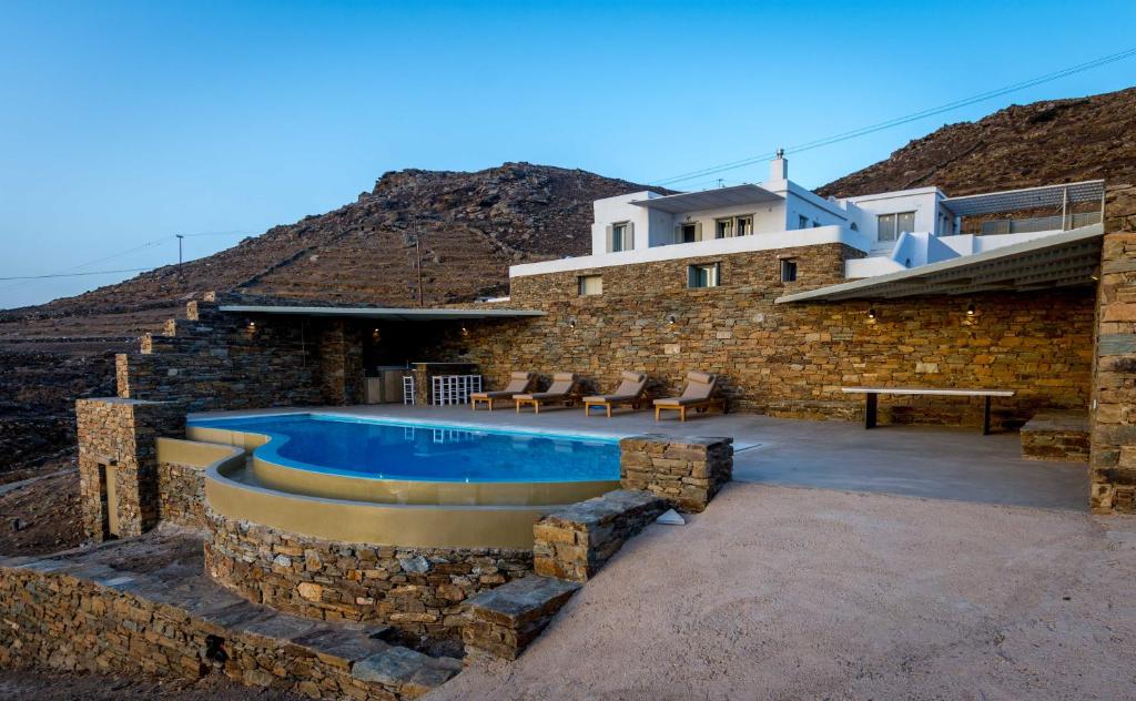 Live the authentic Greek experience by staying at the Alos Residence in Tinos. They have a very modern interior that adheres to the most recent architectural and design trends, while the exterior is designed in accordance with the island's traditional architecture. A panoramic view of the Aegean Sea and its magnificent sunsets is provided by outdoor dining and sitting spaces beneath a pergola. Villa amenities include air-conditioning, a fully equipped kitchen, and a washing machine. Additional amenities include a barbecue, a swimming pool, Wifi, and free on-site parking. Alos Residence can accommodate up to 6 people. The main town of Chora, with its bustling nightlife and shopping, and the harbor are about 20 minutes away by car. The well-organized, sandy beach of Agios Romanos is also ten minutes away by car. Its location in Tinos is ideal for visiting and seeing the island's lovely villages, including Pyrgos, Kardianni, and the Dovecotes Valley.