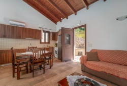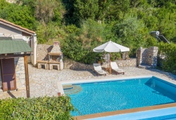 Kerithra Villa in Lefkada welcomes you to your ideal holiday with a blend of style, comfort, and traditional beauty. The villa has one bedroom, one bathroom, and an open concept kitchen, dining, and living space that leads straight to the backyard, which has a swimming pool, a grill area, and sun loungers for visitors to enjoy. Because there is a sofa that can be turned into a bed that sleeps two, this villa can accommodate two adults and two children. A cot is also available for infants. There is enough parking for one vehicle.