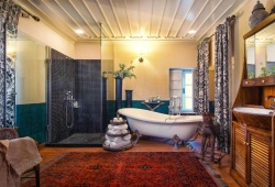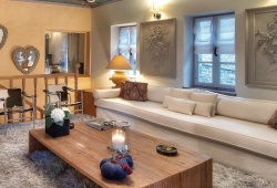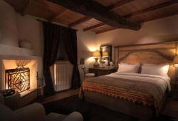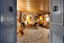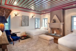 Once inside the outside entrance's twin wooden doors, a striking two-story canvas of almost endless possibilities becomes visible. An enchanting courtyard with views of a fairy tale, an outdoor wooden Jacuzzi with a backdrop of pristine nature, five fireplaces, two bathrooms, two sitting areas, three bedrooms (two master and one with two single beds), and an outdoor dining area that can seat over six people make this home perfect for parties and elegant private events.