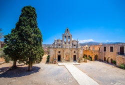 After the archaeological site of Knossos, the Arkadi Monastery near Rethymnon is the second most popular tourist destination in Crete. An essential base of support for the Cretans in their war for freedom, Arkadi Monastery was crucial in ending the Ottoman Occupation. A small number of monks still remain there and look after the church and the structures around it. A small gift shop with handcrafted products and excellent replicas of Byzantine icons may be found inside the monastery. There is a memorial building outside the monastery that honors the Cretans who perished in 1866 and houses their bones. Visit Arkadi Monastery and you will see history coming alive as you explore the surrounding areas.