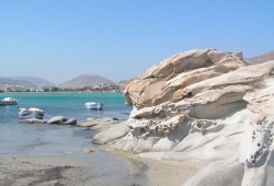 Parikia, the capital of Paros, is a bustling town that combines traditional Greek architecture with a lively atmosphere. This picturesque harbor town is an ideal base for exploring the island, as it offers excellent transportation links and a wide range of accommodation options. Stroll through the narrow streets of the old town, lined with whitewashed houses adorned with colorful bougainvillea. Discover hidden gems such as the 13th-century Venetian castle and the impressive Church of Panagia Ekatontapiliani, one of Greece's most important Byzantine monuments. Parikia also boasts a vibrant nightlife scene, with numerous bars and clubs where you can dance the night away.