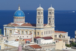 The harmonious coexistence of Orthodox and Catholics throughout the year is a defining feature of Syros' religious legacy. There are several chapels, monasteries, and Catholic and Orthodox temples on Syros. The church of Agios Nikolaos in the Vaporia region welcomes you to the island which is the patron saint of Syros. The orthodox Byzantine temple, the temple of the Resurrection of the Savior dedicated to the "Resurrection of the Nation," and Saint George, the Catholic diocese of Syros (also known as "San Tzortzis"), dominate the scenery on the outskirts of Ermoupolis on the peaks of the two opposing hills, Ermoupoli and Ano Syros.