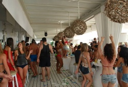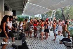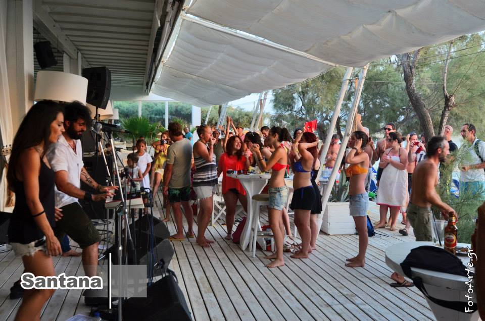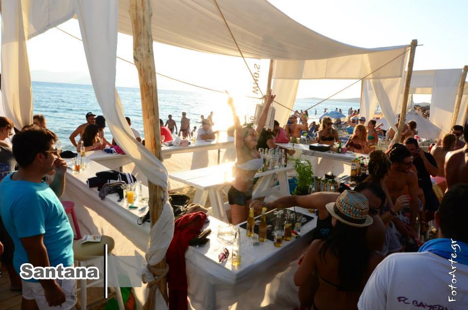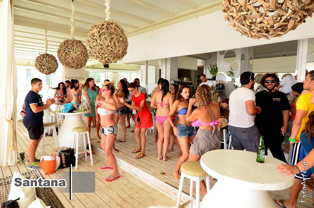 One of the best beach clubs of Naxos. The Beach Club is the place where you can have a breakfast and you will enjoy a cooling drink, a delicious ice cream, a snack or light meal, or have a sunbath on the club loungers. You enjoy a cool drink or have a snack on the beach, or simply join any of beach parties. Santana Beach Club in Naxos is the perfect place to relax and have entertainment right on on the beach.