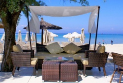 One can relax on its sun loungers early in the morning with coffee, natural juices, fruits, snacks, and fresh salads, and as the magnificent Greek sunset approaches, take the place of iced beers and unique cocktails! In the evening enjoy your drink under the stars. Anemos Beach Bar, with its experienced staff, is always at your disposal to cool you down on the hottest days of your vacation in Halkidiki. For lovers of water sports, surfing, water skiing, paragliding, pedal boating, etc., are located near the area.