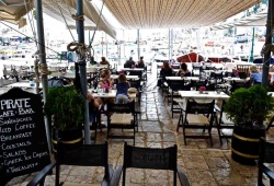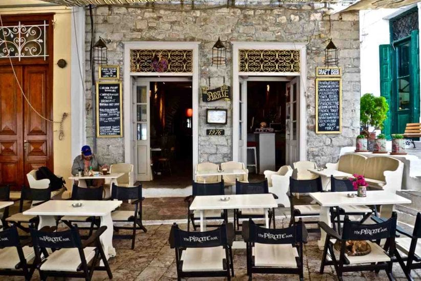 The Pirate Bar is in the center of the harbor on Hydra Island, Greece, where you can watch the bustle of Hydra port in town while you drink your coffee, have a snack & enjoy cold drinks. Good WiFi and homemade healthy breakfasts and lunches by Wendy. Discover marvelous signature cocktails in the evenings. International atmosphere with great entertainment.