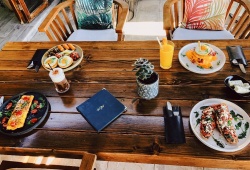 Roi Mat Cafe stands out for the welcoming and cozy atmosphere. Visit this cafe after a long day sighteeing the areas of Kardamena for a coffee or a refreshment, have brunch with friends, enjoy cocktails and delicious dishes to accompany your moments. Roimat Cafe in Kos has a spectacular view of the sea, a yard full of greeη and a simple stylish interior space, an all-day hotspot for you.