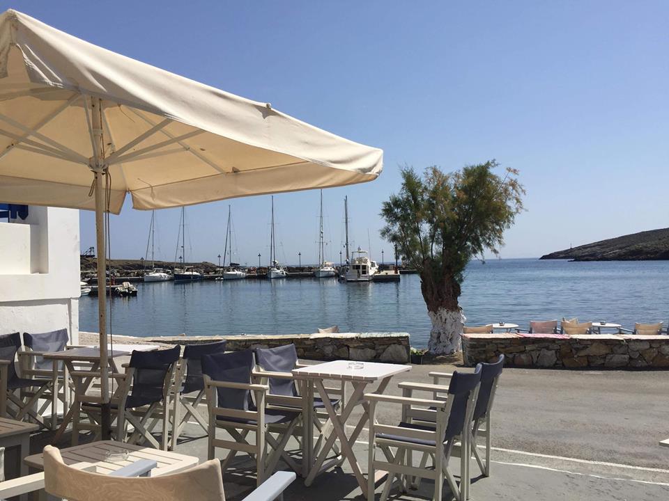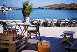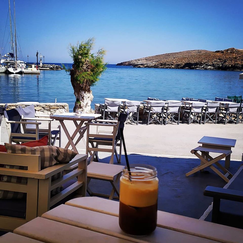 On the sea with a panoramic view of the marina and the sailing ships surrounded but also the picturesque Cycladic houses that descend to the sea, you will find the Sailor Bar in Loutra, Kythnos. Ideal for enjoying early breakfast and truly delicious and varied coffee.