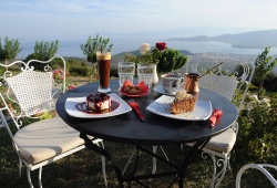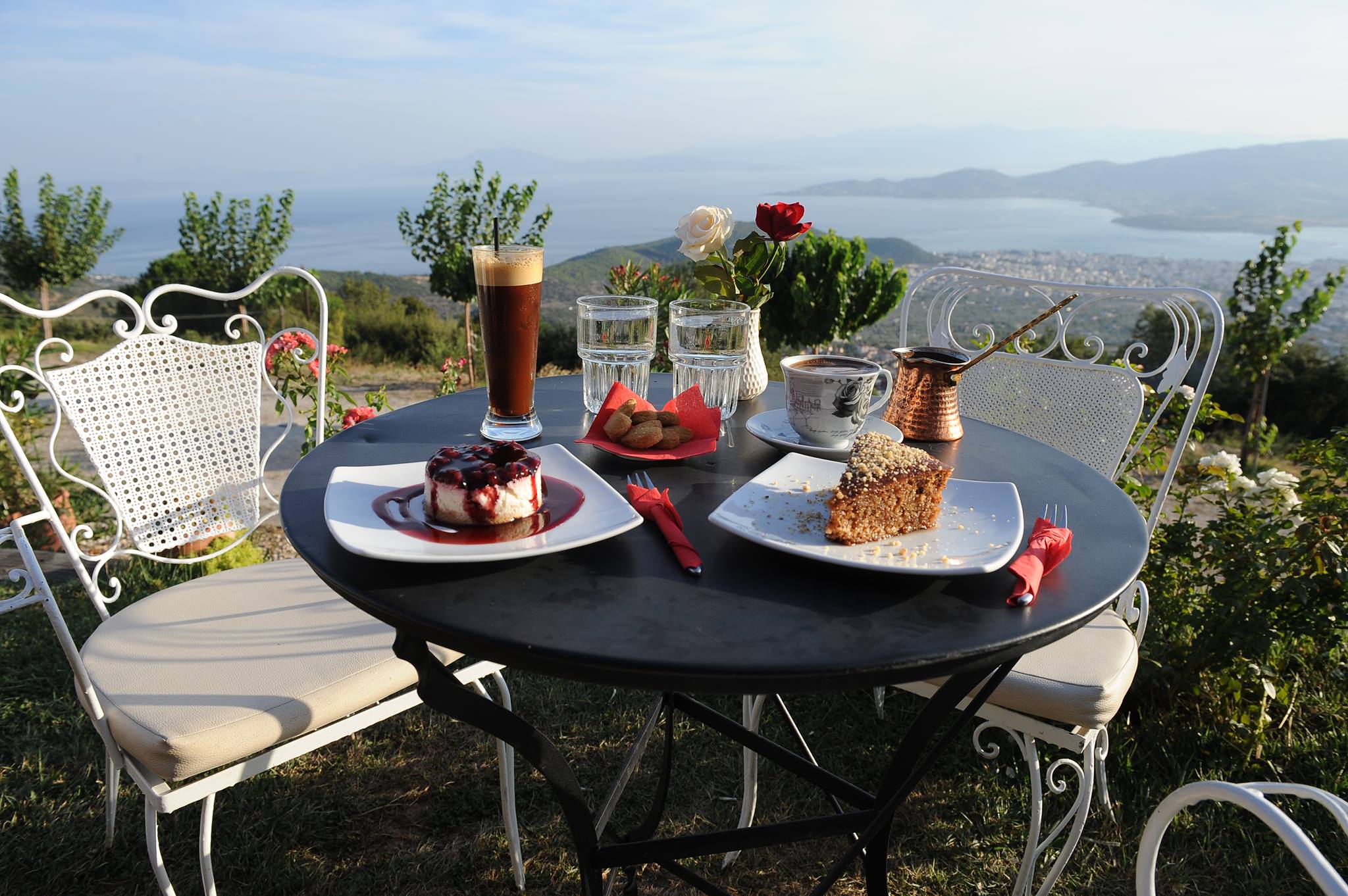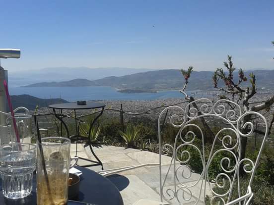 An all-day coffee place located in Portaria of Pelion with a panoramic view of Volos and the blue horizon of the Pagasitikos Gulf. Relax and enjoy your coffee, soft drink, beer, wine, snacks, and sweets in a very warm and friendly environment.