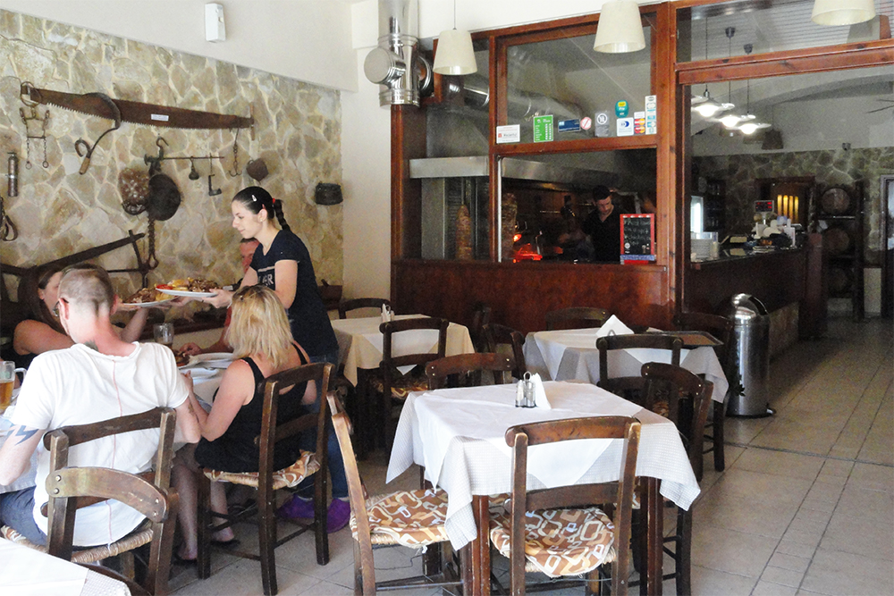 The pita gyros from pork and chicken, grilled meats, traditional Greek dishes cooked with virgin olive oil, and tasty Cretan wine guarantee quality in the food.