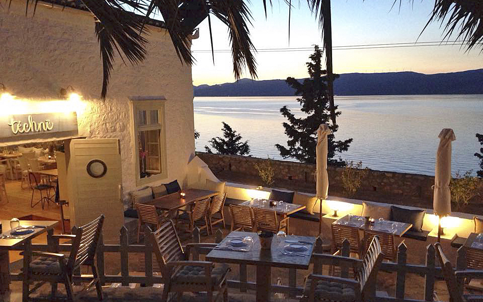 Apart from its excellent cuisine, Techne has been popular also for its drinks menu, which includes specialty coffee, inspired signature cocktails, a sophisticated wine list, and craft beers from Greek microbreweries. Techne is one of the best restaurants in Hydra with the breathtaking sea views and is the ideal spot for an aperitif cocktail around sunset or an afternoon coffee under the shade of the iconic palm tree in the middle of its yard.