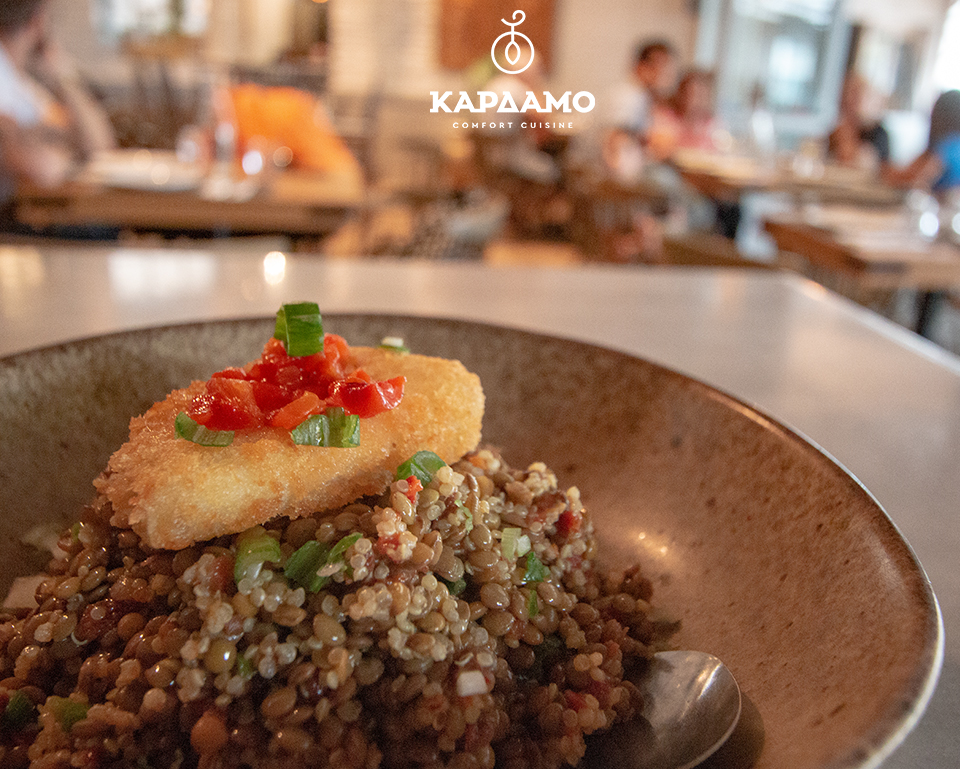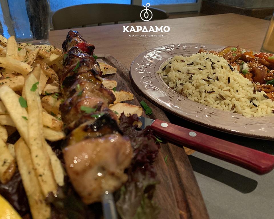 This restaurant opened its doors for the first time in October 2010, in the Historic Centre of Kalamata, while in 2013 it moved to the Kalamata Railway Station Square. All these years, the primary concern has been to offer customers authentic flavors, based on Greek products in Peloponnese, and to provide an ideal environment for the restaurant. According to the chef, “The knowledge of the traditional cuisine and its presence in the creation of every dish constitute the basis of good food.” Under this philosophy, the menu was set up. The Greek products hold a leading role and bring authentic, familiar, and—at the same time—newfound flavors to your plate. The team of Kardamo Restaurant in Kalamata is responsible all day for keeping a friendly and family environment so that you can be satisfied both by the kitchen and the service.