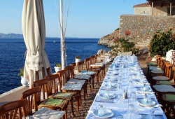 The Kodylenia Taverna enjoys one of the most outstanding waterfront locations in Kaminia. Its slightly raised setting, on the corner of Kaminia Harbour, offers a divine, constantly changing view. There's no better place to enjoy watching 'real life' as it truly is in Hydra with the comings and goings of the fleet of little wooden fishing boats and people arriving and departing on foot or by sea taxi.
