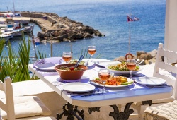 At the Kodylenia we cook all of your favorite traditional Greek dishes, from freshly chopped Horiatiki and homemade Tzatziki and Fava served with crusty bread from the local baker to Kokonisto and slow-roasted lamb. In season we serve freshly caught fish, often straight off the boats that pull into the harbor below, as well as calamari and octopus.