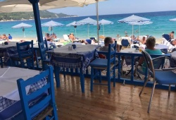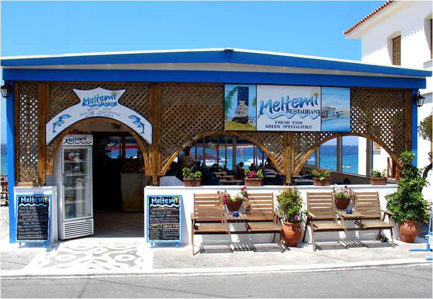 Meltemi is a traditional Greek family restaurant with the dominant colors being blue and white. The restaurant is situated on the main beach of Kokkari in Samos, just one step away from the crystal clear water of the Aegean Sea. Meltemi restaurant offers all kinds of Greek specialties as well as delicious fresh meat prepared in all possible ways, including the famous Greek gyros.