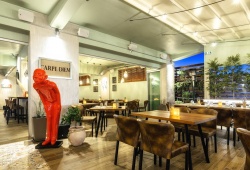 Carpe Diem Restaurant is located at the end of the famous Laganas main street, next to Waikiki Club, exactly where the La Bamba building used to be, just 70 m away from Laganas beach. The mood is classy, welcoming, and serene. Attention to detail is the main concern of the restaurant, from food quality and decoration to service and music. Carpe Diem Restaurant in Zakynthos has special and traditional recipes made of the purest ingredients. The menu is rich and includes impressive appetizers, meze dishes, fresh salads, and meat and seafood dishes of exquisite quality.