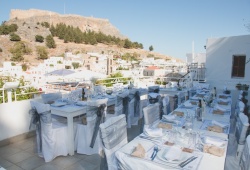 The restaurant is also available for wedding receptions and events. The expert team will assist you in any preparation matter for a successful and stress-free venue. All venues take place on our rooftop garden with the stunning view of Lindos. During your holidays in Rhodes, if you're staying or just going through the Lindos region, this place is a must-visit.