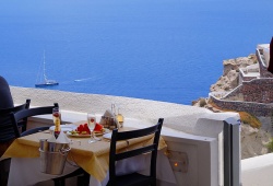 Discover Greek gastronomy in a well-known restaurant of Santorini, beautifully renovated, externally and internally, for your comfort and romantic delicious delights with a view of the Caldera. Apsithia Restaurant in Oia awaits you this summer to taste the new gastronomic creations during your visit. The experienced staff will help you choose, amongst many dishes, exactly what suits your tastes. Taste only the finest local meat; fresh fish and seafood and vegetables are used to create Greek and international specialties with wonderful suggestions from the wide list of local and many famous wines of Greece.